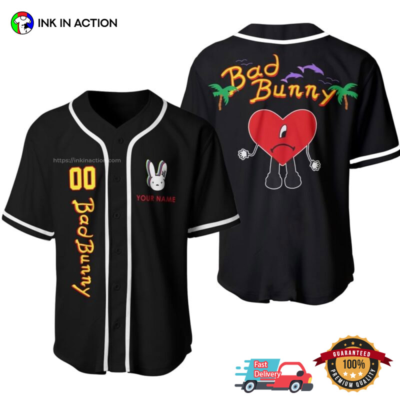 Personalized Black Bad Bunny Baseball Jersey