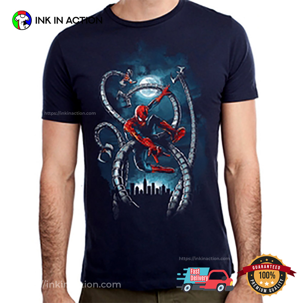 Spider-man Fight With Dr. Octopus Tentacles Tangled Web T-shirt