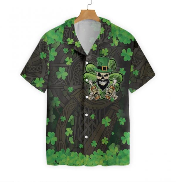 The Celtic Cross Harp Irish Skull Leprechaun Hawaiian Shirt