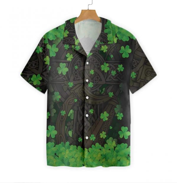 The Celtic Cross Harp Irish Shamrock Hawaiian Shirt
