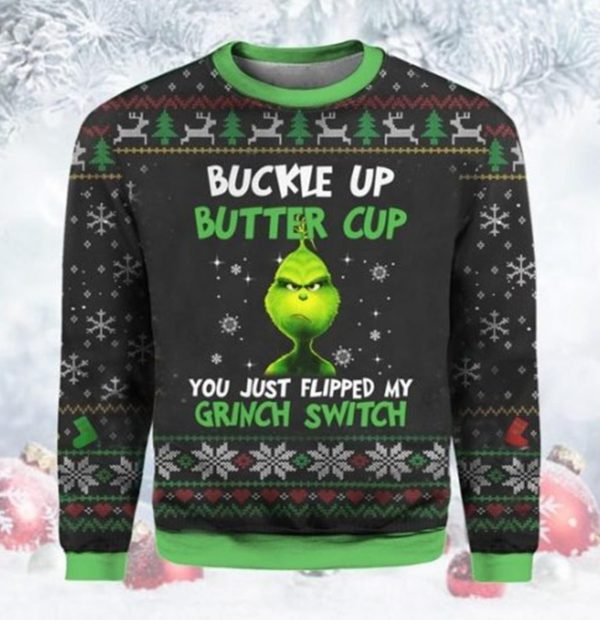Buckle Up Buttercup You Just Flipped My Grinch Switch Christmas Ugly Sweater Sweatshirt