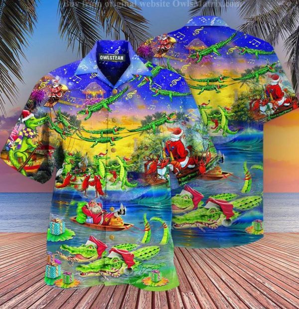 Christmas Santa Riding Alligator Hawaiian Shirt
