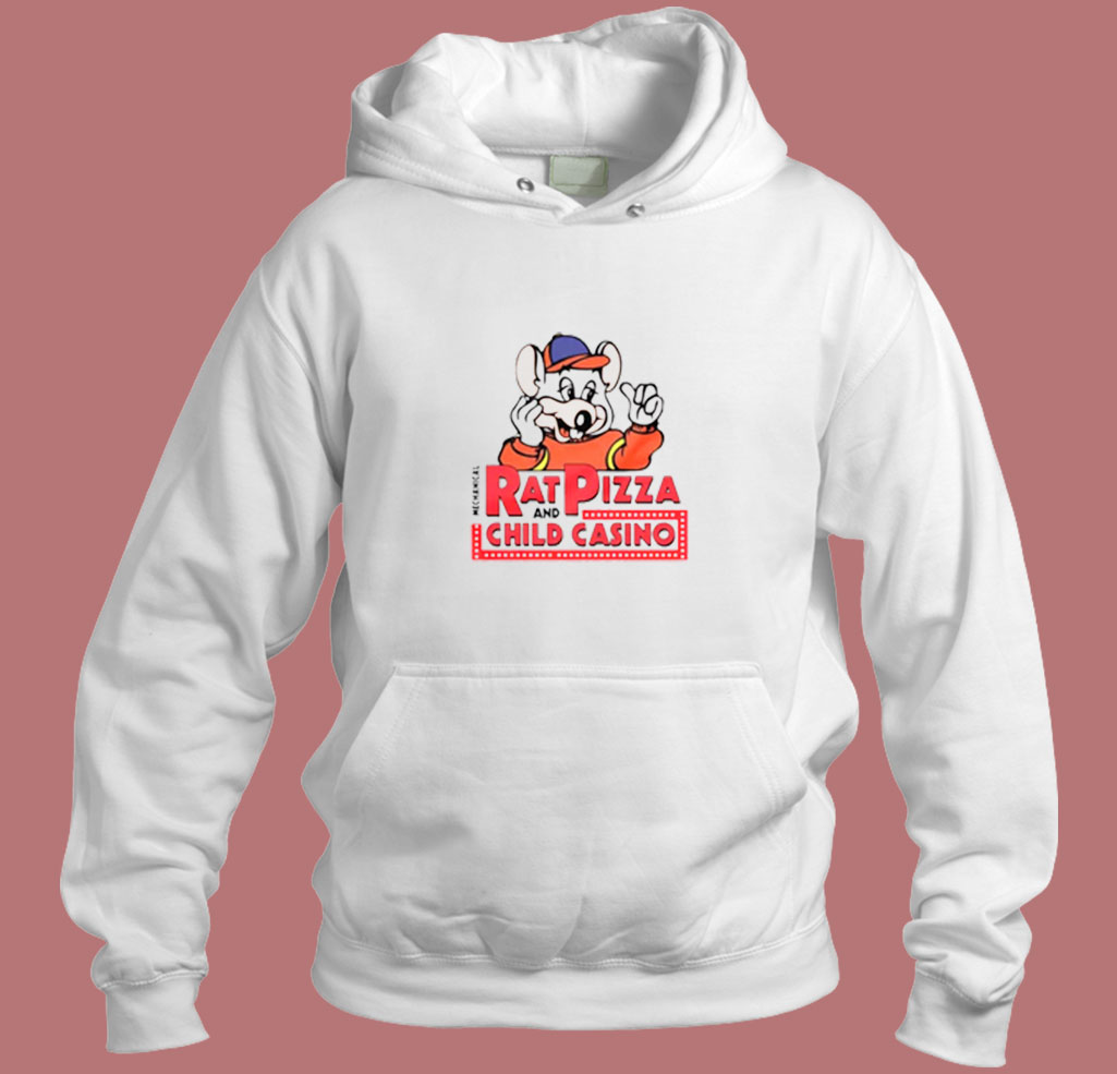 Chuck E Cheese Parody Mechanical Rat Pizza 80s Hoodie
