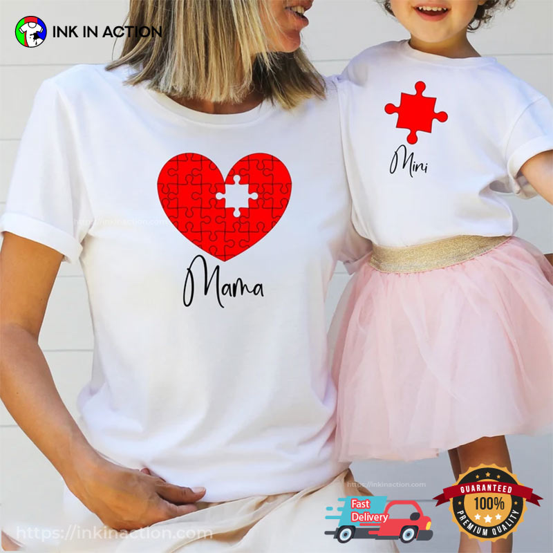 Customized Puzzle Heart Mom And Baby T-shirt, Personalized Gifts For Mom