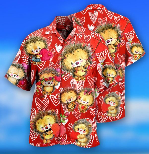 Cute Hedgehog On Valentines Day Hawaiian Shirt
