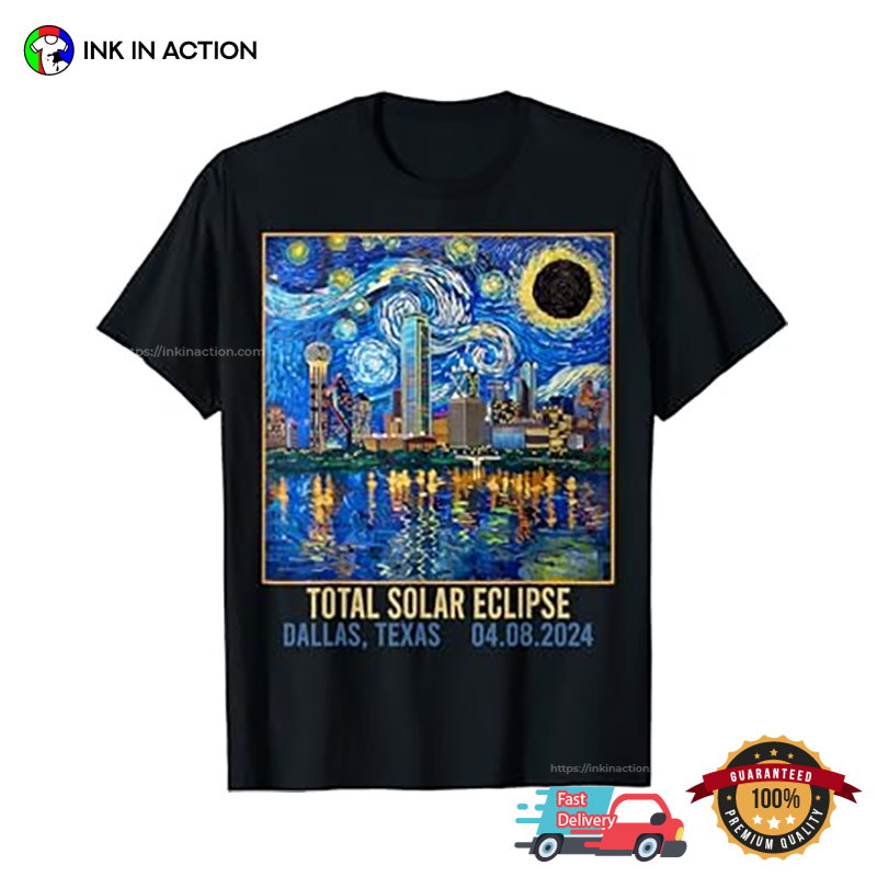 Dallas Texas Skyline Artistic Total Solar Eclipse 2024 T-shirt