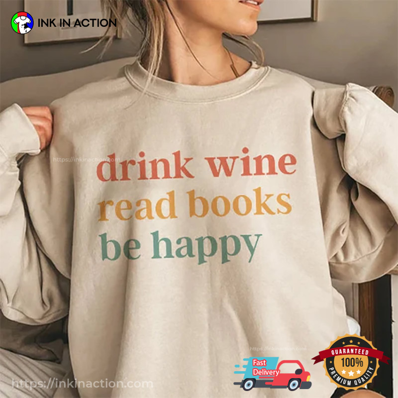 Drink Wine Read Books Be Happy Funny Wine Shirt