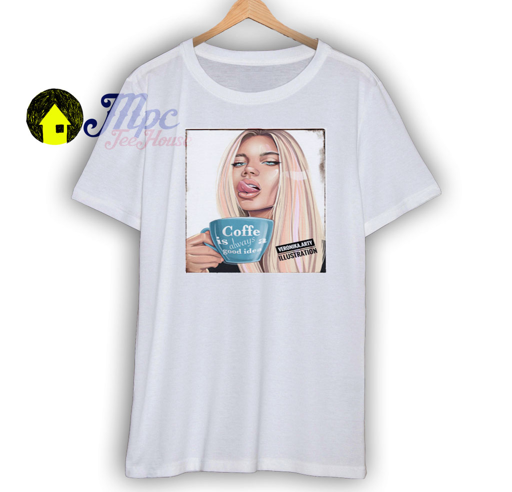 Enjoy Coffe Beautiful Girl Digital Art T Shirt