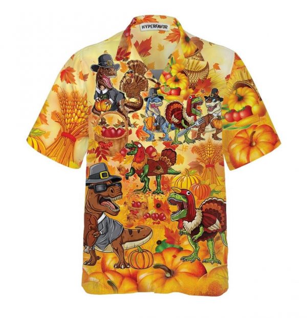 Happy Thanksgiving Dinosaurs T Rex Thanksgiving Hawaiian Shirt