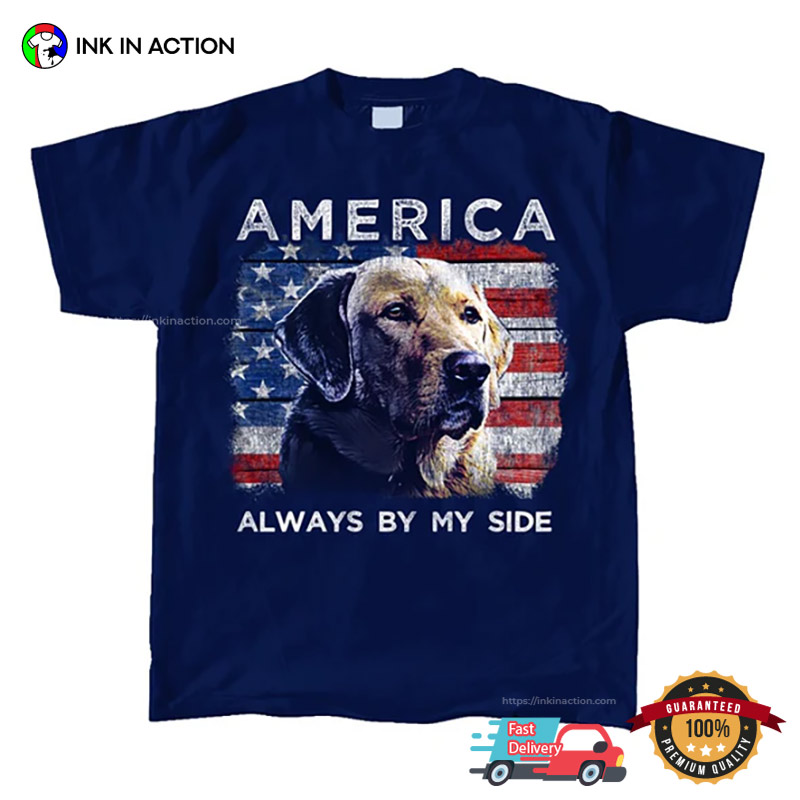 America Always By My Side Funny Dog American Flag T-shirt