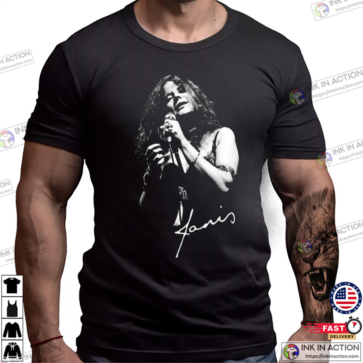 Janis Joplin Performance Graphic Signature Memorial T-shirt