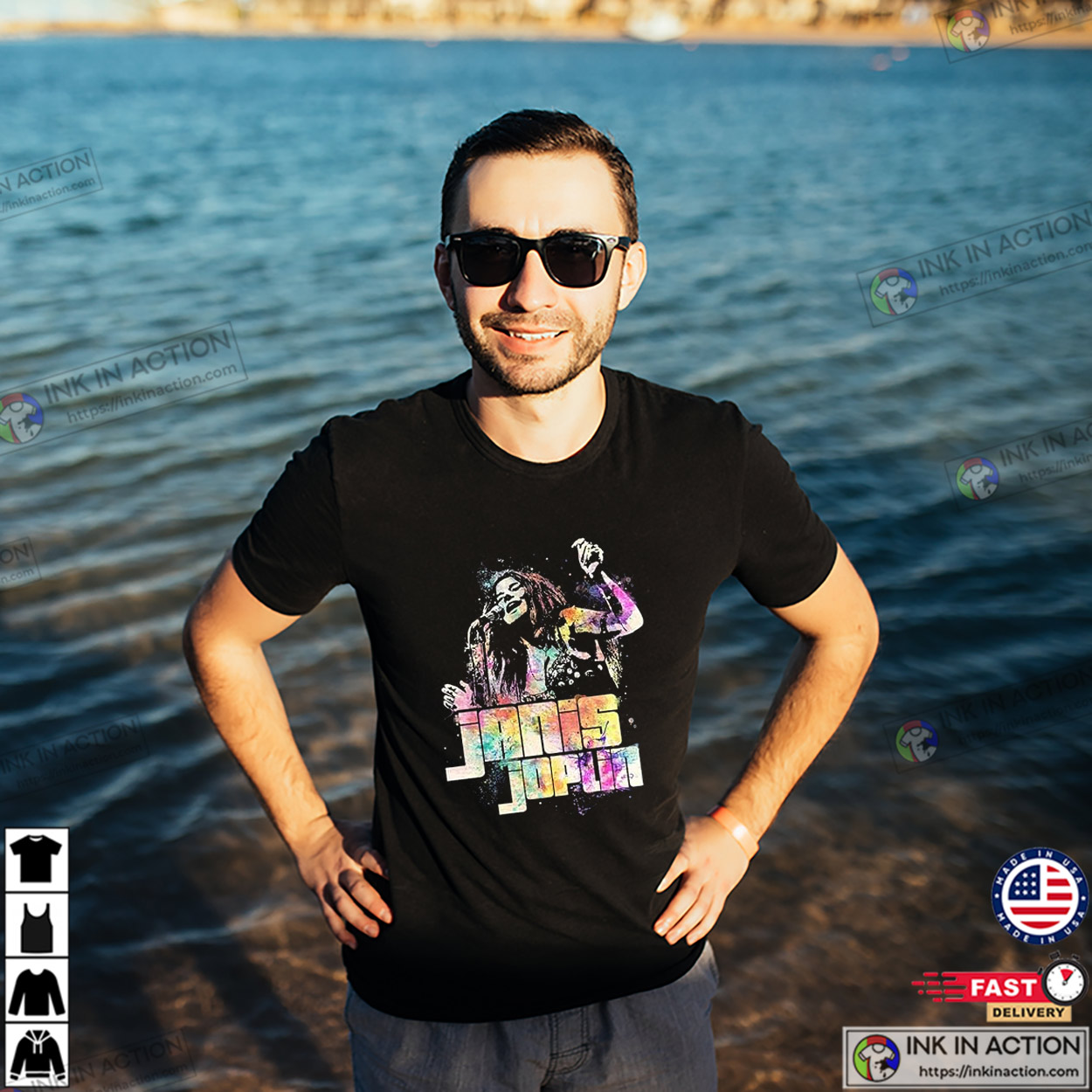 Janis Joplin Watercolors Classic Graphic T-shirt