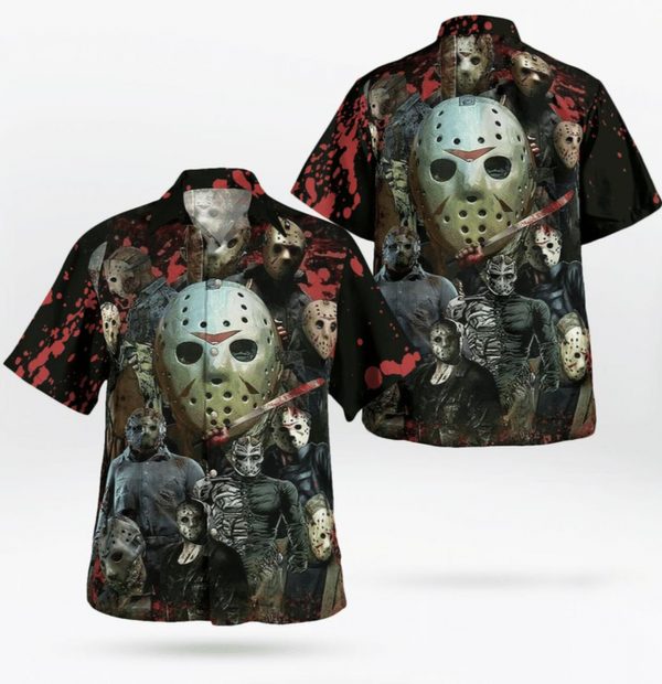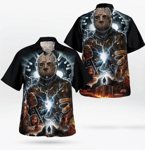 Jason Voorhees Black Horror Button Up Hawaiian Shirt