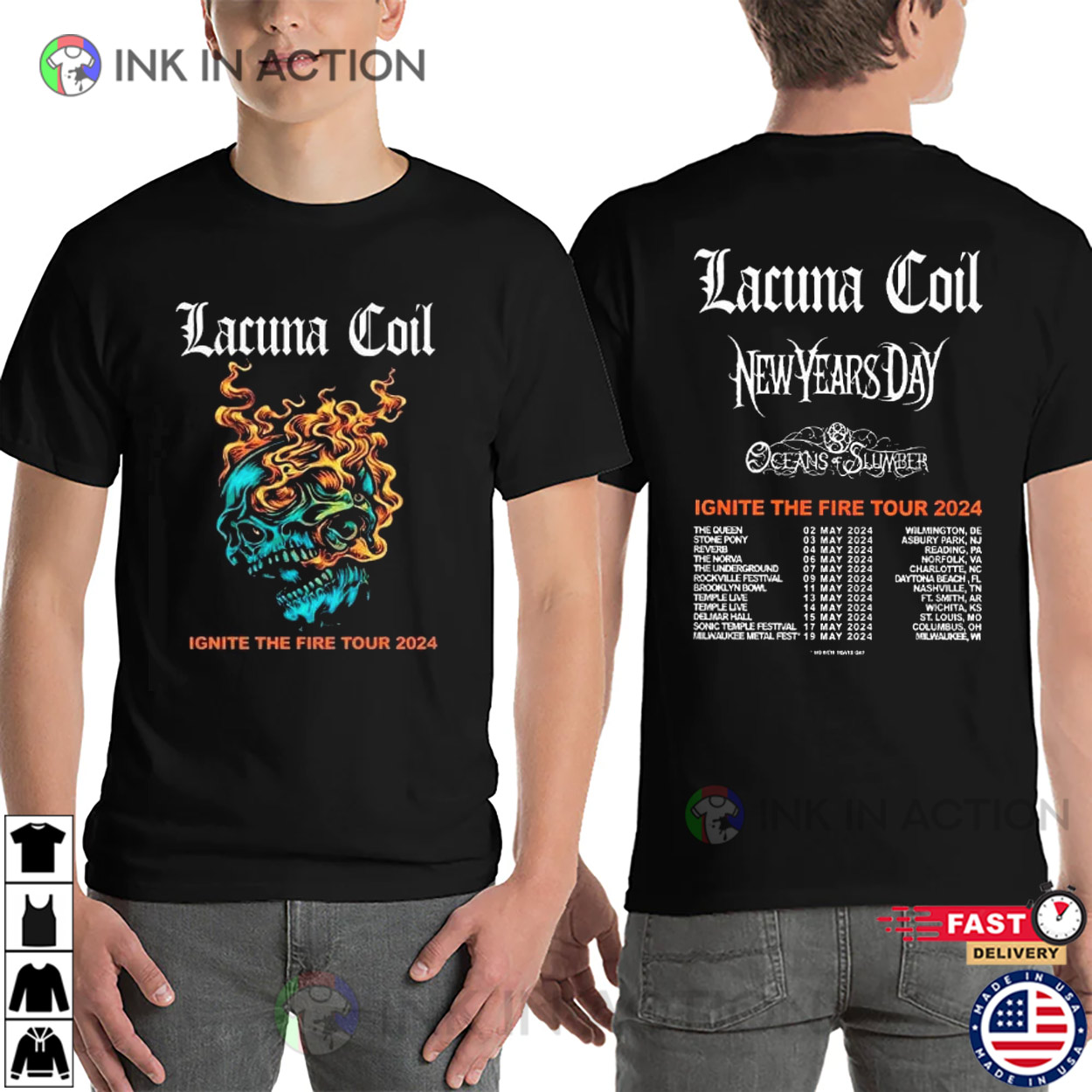 Lacuna Coil Ignite The Fire Tour 2024 2 Sided T-shirt